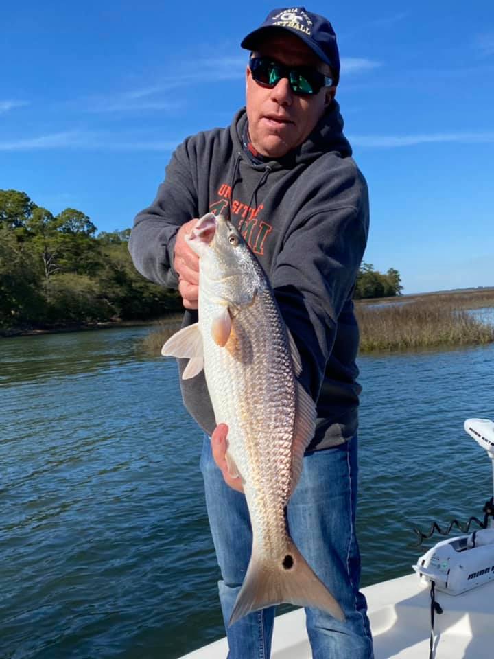 Chuck Many has been releasng red drum at Hilton Head, South Carolina;