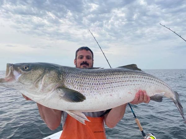 Chuck Many continued to rack up 50-pound strier releases yesterday evening on his Tyman from Highlands as he put Bob and Nikki Bowden plus Rich Carpenter into bass from 36 to 53 pounds.