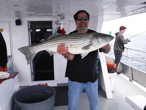 At Atlantic Highlands, Capt. Rob Semkewyc left stripers biting today on his live lining trip with the Sea Hunter as the boat was limited. He has canceled tomorrow’s striper trip due to the weather forecast, but will be sailing for stripers with a limited group with reservations on Friday. He may also make one more striper trip next Wednesday. See photo below,