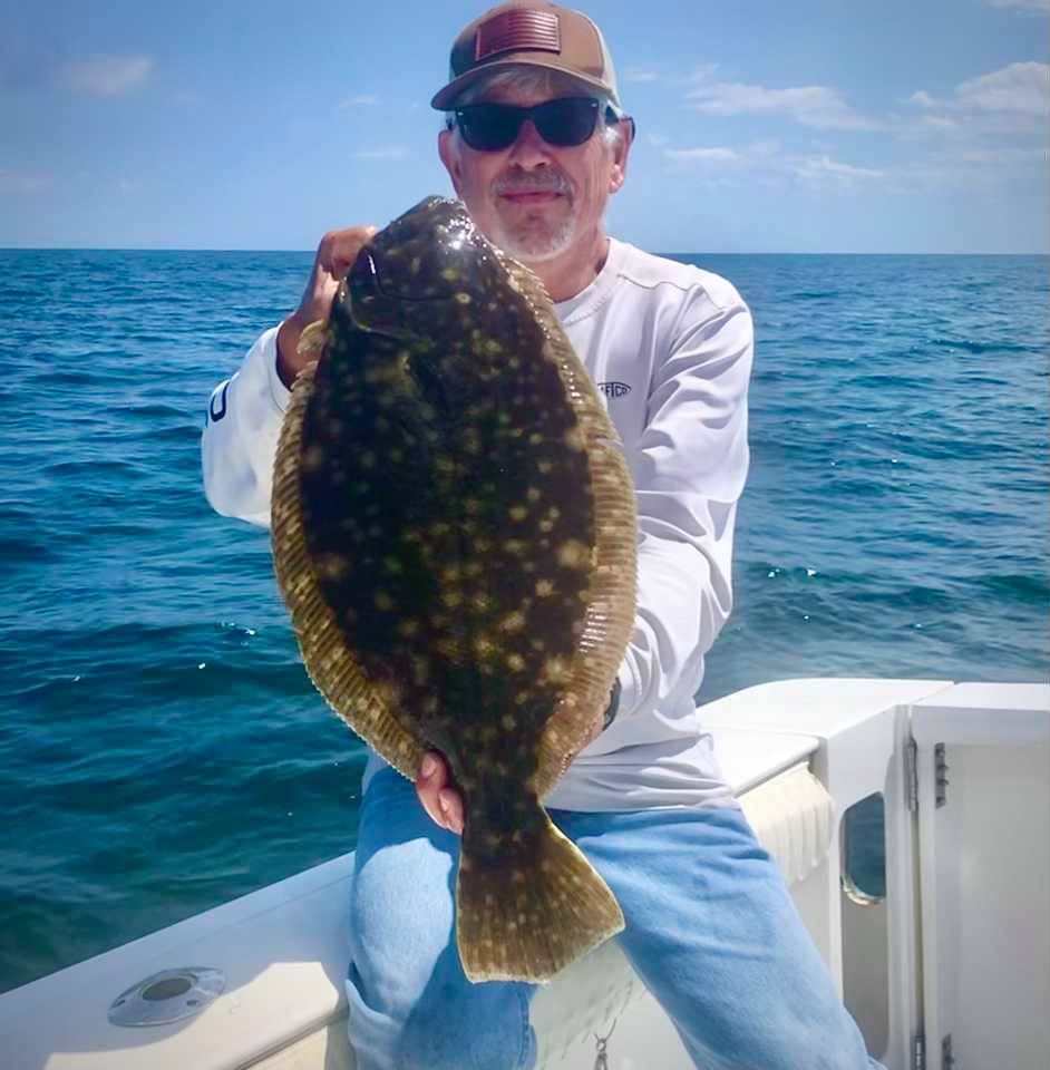 Doug Rusch with a hefty fluke on his boat out of Manasquan Inlet.