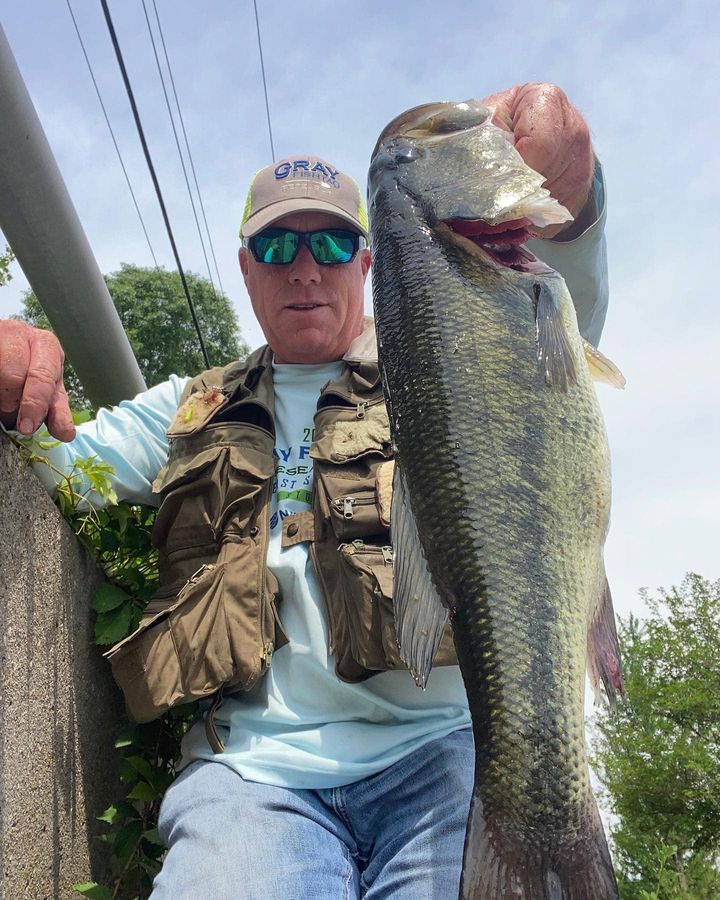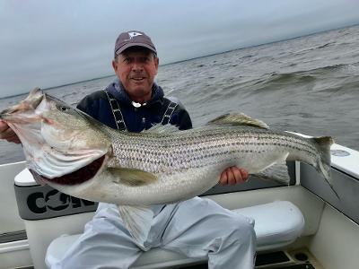 Jim Gates is a regular at Point Pleasant Canal and in the Bay Head surf, but had to troll for this big striper.
