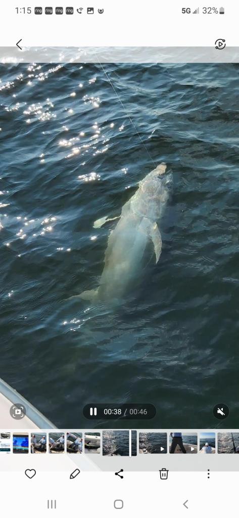 Capt. Joe Massa ran his My Three Sons over to the Rockaways on Friday with a live well full of live bunkers he castnetted — and fed one of them to a bluefin of 80 inches (see photo below) which can’t be retained under the present regulations. Though Massa had never caught a giant before, he had no problem cranking it in from the 50-foot depths with the big game rod in a swiveling rod holder. That commercial method of fighting giants is efficient, but isn’t a sportfishing catch — and doesn’t provide the thrill of actually fighting a giant with a rod. With giants in such shallow waters, it’s possible to use lighter tackle with enough braided line to tackle giants which can’t beat you by going down. I wish I had this opportunity when I was into giant fishing — but at 86 I’ll leave that to the young bucks!