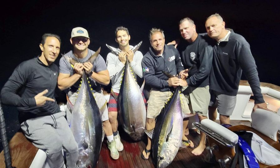 Capt. Mark DeBlasio reports his Sept. 15-16 overnighter for the Anthony Danza party on End Game encountered rougher seas than predicted, but was still successful as bigeyes and yellowfin tuna were biting — and a large wahoo was added.