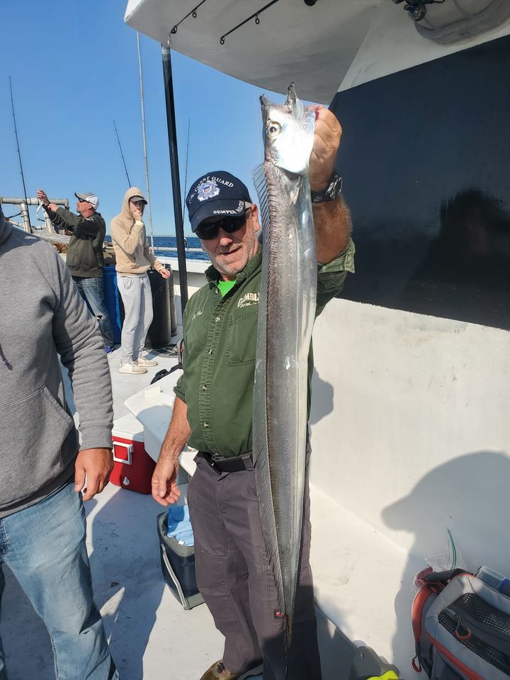 Many tropical species show up in NY/NJ Bight waters late in the summer, but rarely in quantity. Cutlassfish were virtually unheard of until a few years ago, but seem to be becoming a regular visitor. Indeed, Chris Lido (photos below) reported his last trip on the Gambler from Point Pleasant produced a quantity of that long, flattish, silver-skinned species with a narrow mouth full of fang-like teeth.