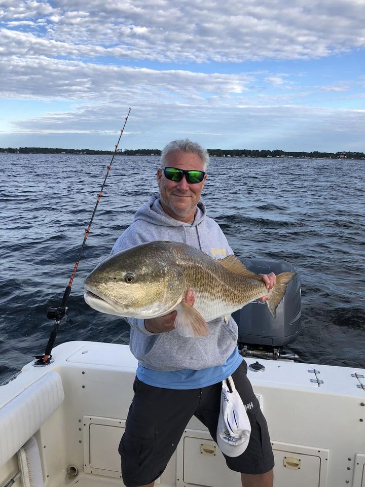 Capt. Dave Riback of the Queen Mary from Point Pleasant took advantage of a blowout day to drive down to Minnescott Beach, North Carolina to join a friend in catching husky red drum.