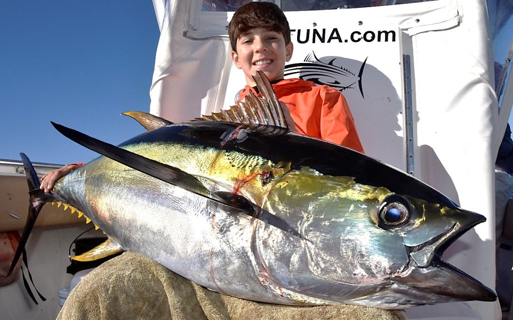 Capt. John McMurray said this youngster was working a popper from NYTUNA this week when this yellowfin hit it near the boat. Though it weighed almost as much as the young angler, the kid fought it all the way unaided!