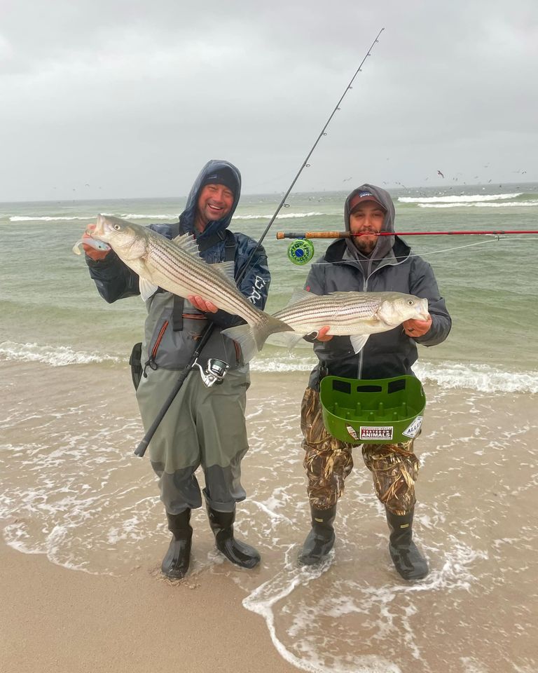 Nick Honachefsky was among the surfcasters who got into yesterday’s Ocean County striper blitz. He fished from 1:30 to 3:30 and released over 30 bass from 23 to 35 inches on shads and with a fly rod.