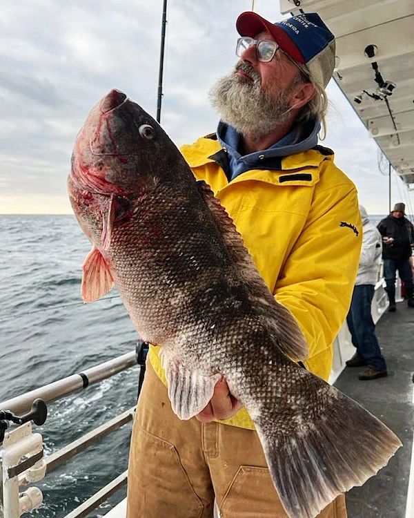Regular customer Don O’Neil caught a real trophy on Capt. Ryan Bogan’s Jamaica II from Brielle after an 11.7-pound blackfish hit his whitelegger crab bait.