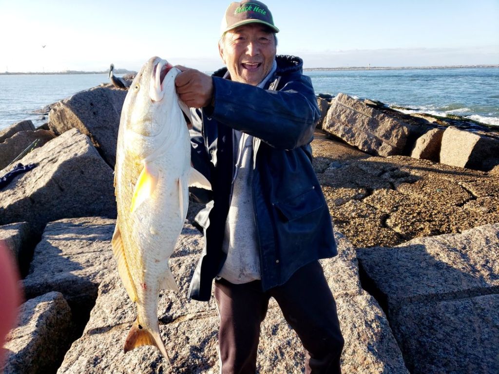 Famed N.J. angler Kil Song will go anywhere and do anything for good fishing. He was in Florida yesterday and didn’t like the conditions. So, he drove his car to Texas to catch this bull redfish while casting from a jetty!