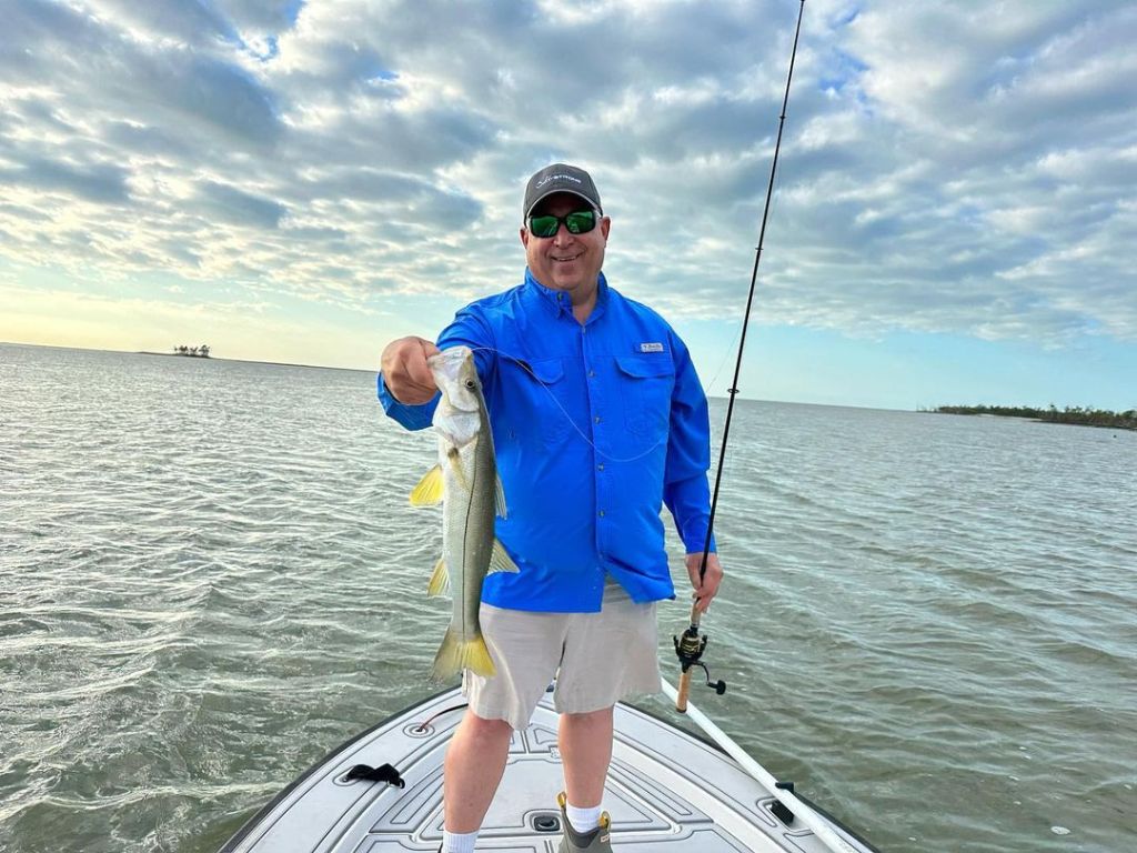 N.J. charter skipper Capt. Frank Mihalic with something he doesn’t catch in Raritan Bay — a snook at Marco Island, Florida