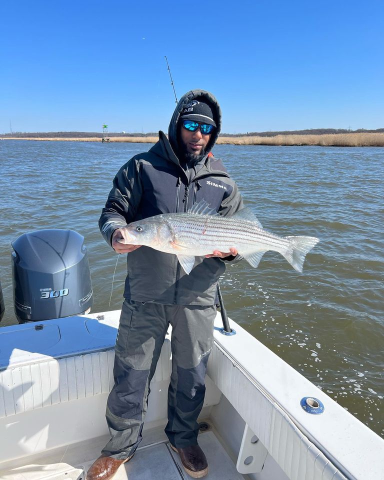 Capt. Fred Gamboa is busy at the Saltwater Expo which continues through Sunday at the N.J. Expo Center in Edison. but his Andreas Toy is in the water at Perth Amboy and already finding school stripers in the back of Raritan Bay.