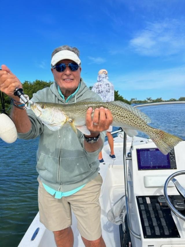 Vinny D’Anton has been working hard to catch a few fish by wading in the Sarasota area, but came up with a beauty yesterday on a DOA Shrimp – a 24.5-inch spotted sea trout.