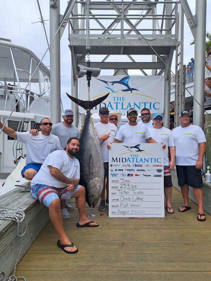 The largest bigeyes seemed to show up yesterday. Talkin Trash boated a 253-pounder that fell just one pound short of the tournament record set by Bernard and Drew Dinardi on their Absolut-ly in 1993. They added a 195-pounder, but The Right Place at 234 and Taylor Jean at 216 pounds took over second and third.