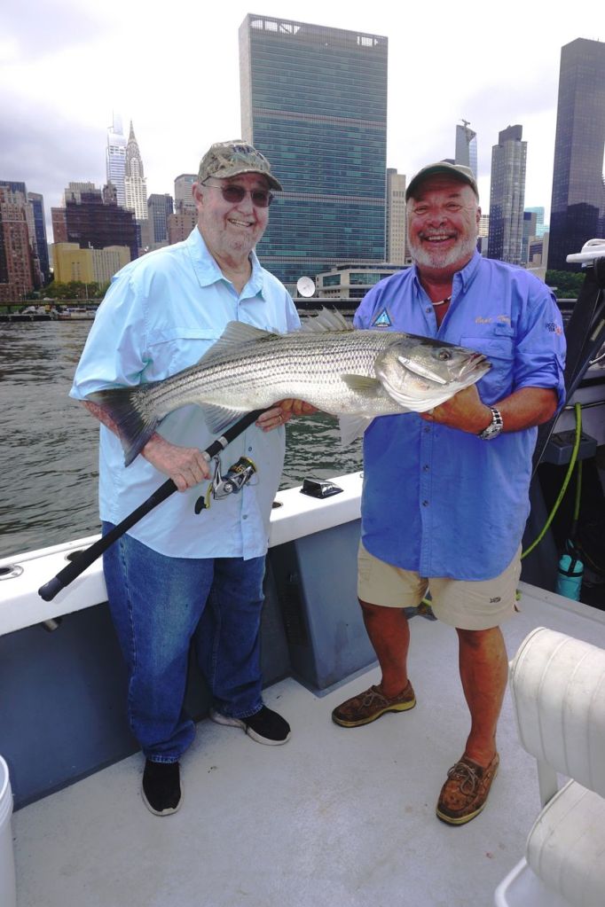 Jim Hutchinson Sr. and Jr. had a great trip in the East River yesterday while casting for stripers and blues with Tony Dilernia.