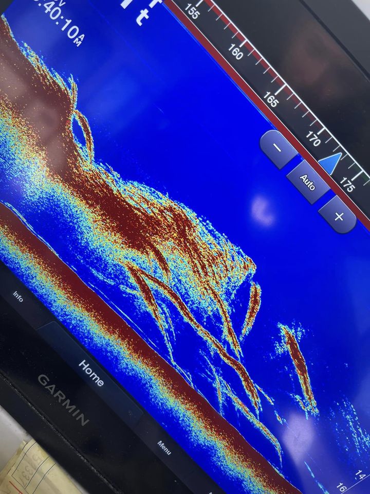The fishfinder on Capt. John Contello’s Just Sayin indicates that it may just be possible to catch a striper.