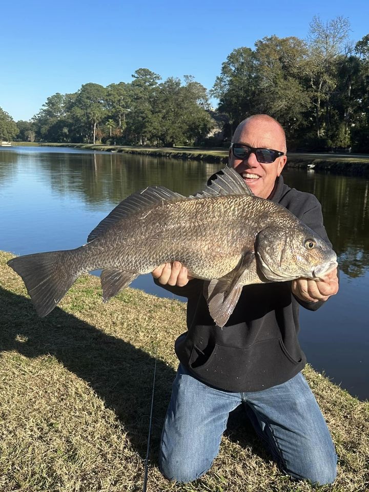 Chuck Many is on a brief trip to Hilton Head, South Carolina for some light tackle action in salt ponds with redfish and the black drum illustrated.