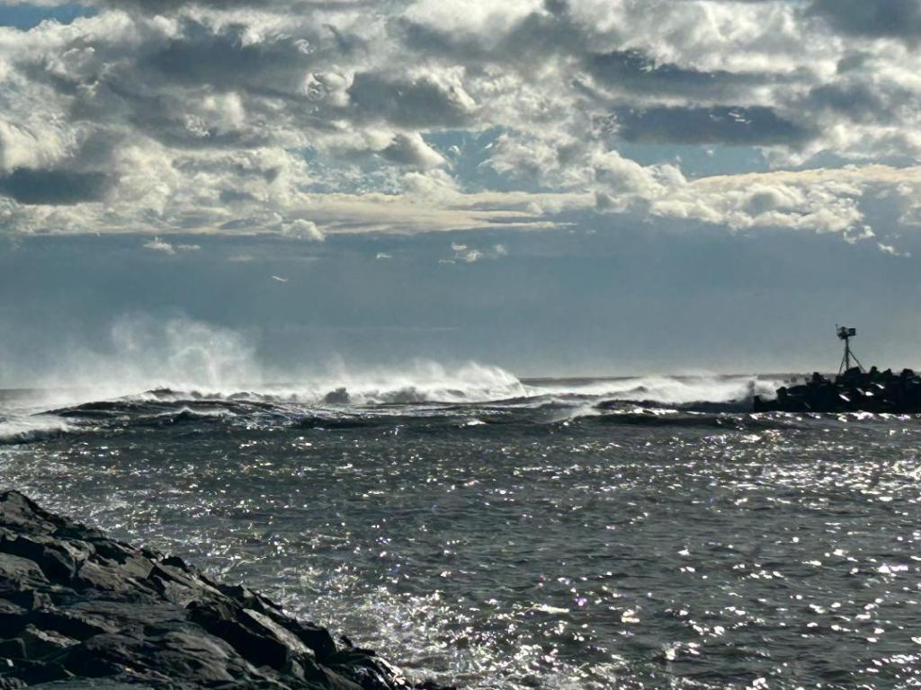 Jeff Merrill took this shot of big swells breaking at Manasquan Inlet this morning.