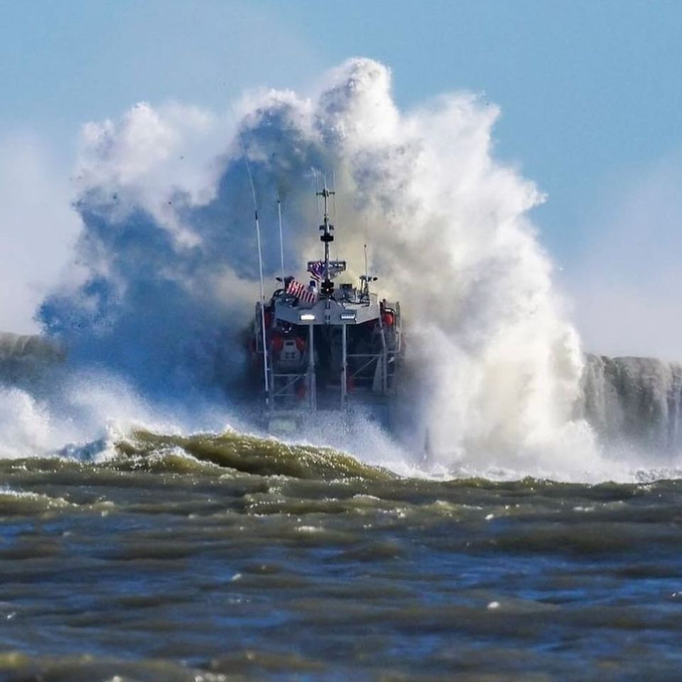 Fisheman’s Den provided this shot of the Coast Guard doing training runs in the inlet during this week’s huge swells.