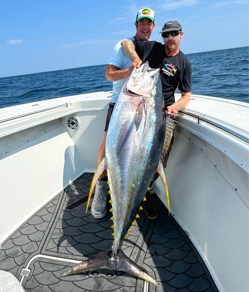 Capt. Gene Quigley reported : “Panama sized yellowfins right here in New Jersey. It’s been nothing short of amazing catching these 100 lb plus yellowfins with our clients on poppers, jigs and bait….these are some of the biggest YF’s we have seen in our local waters that are being “consistently” caught day in and day out over the last two weeks. Been some heart breakers with pulled hooks, broken leaders and broken hearts at the boat…..but there has also been some glorious victories as well. We live for this.”