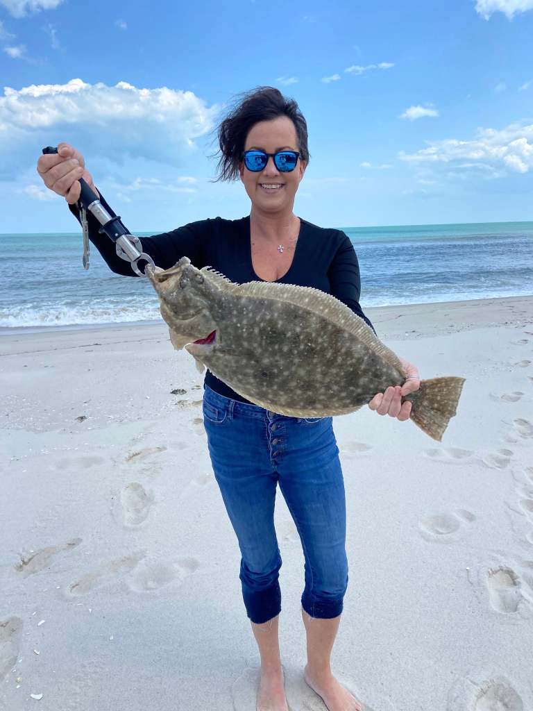 Betty & Nick’s in Seaside Park reports Kat caught this 24-inch, 5 1/2-pound fluke in the surf.