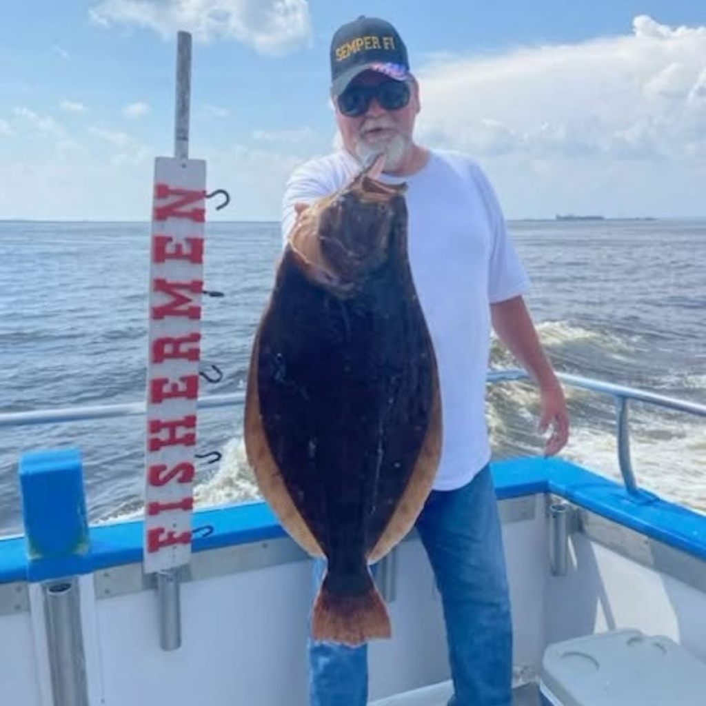 Fluking was tougher today for a charter on the Fishermen as the wind came up early and shut down the bite.