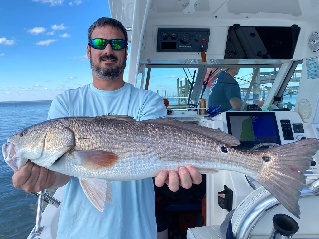 A red drum sports big tail spots at one of Chuck Many’s Hilton Head salt ponds