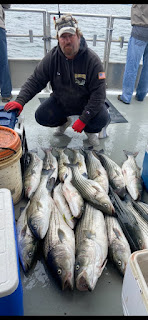 The Golden Eagle from Belmar had to search for ocean stripers, but found them to the south. Most were too large and included one over 50 pounds, but there were some keepers and bonus fish, Live baits and 9-inch shads did the job. That boat switches to a 6:30 sailing time on Friday
