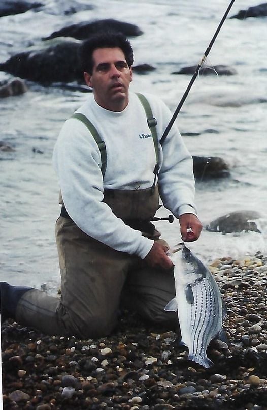 Mike Monte, back from Nantucket to chase stripers on his old Monmouth County beaches, releleased five schoolies this morning