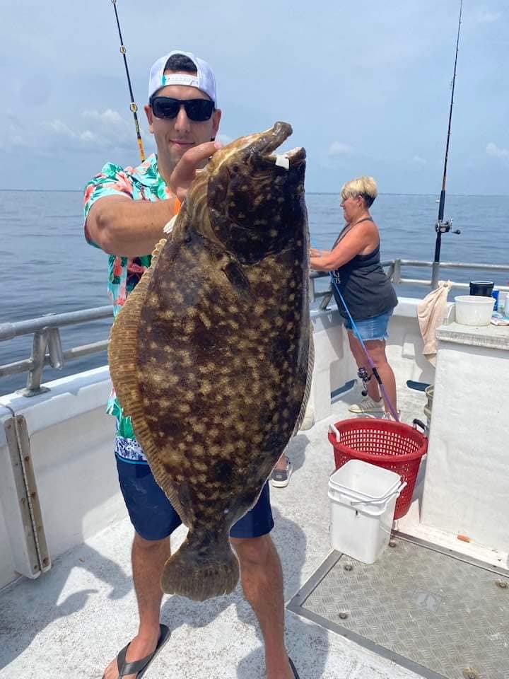 Capt. Ron Santee said a 6 a.m. downpour kept many anglers away, but those who got aboard the Fishermen from Atlantic Highlands were happy with catches of fluke up to 5 1/2 pounds.