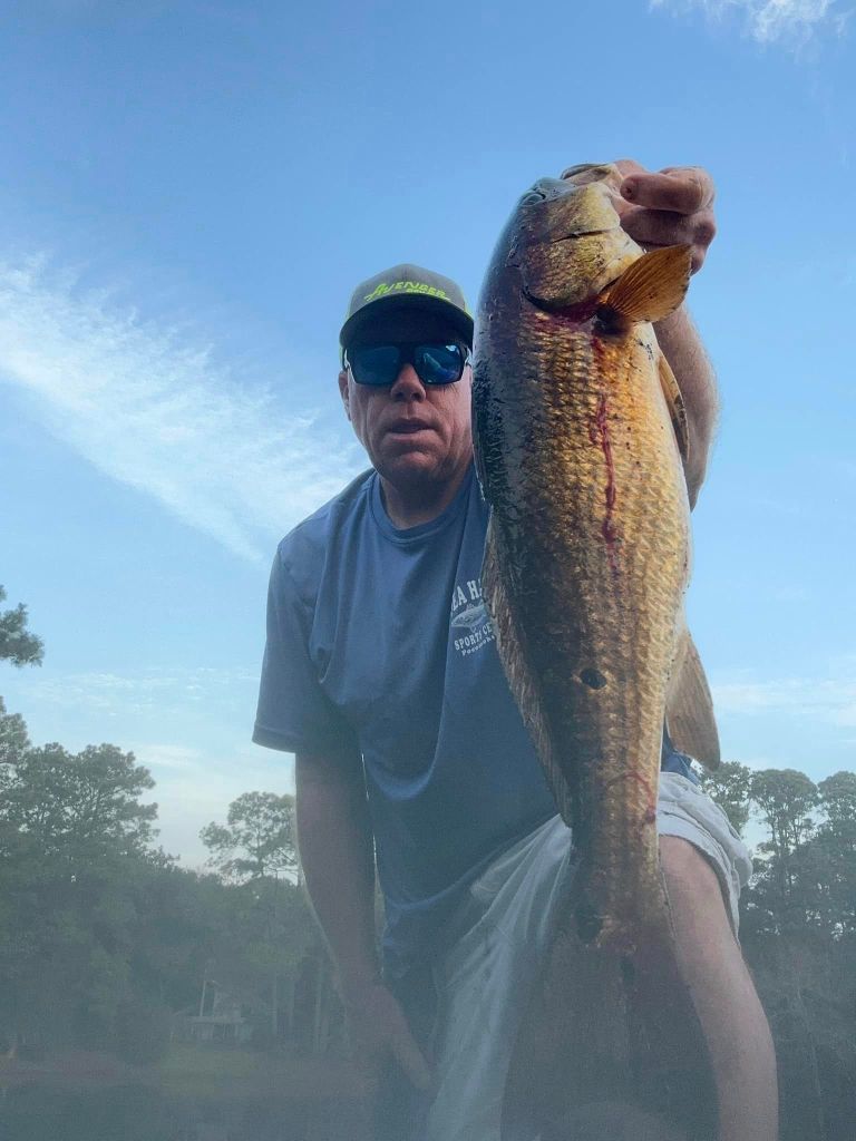 I had a problem with WordPress yesterday as I couldn’t move the page up or down to edit or add anything. There was no explanation of the bottom photo with Chuck Many and daughter Isabella with black bass from Hilton Head, S.C. ponds which were producing action while chilly waters seemed to be holding back the bite in salt ponds. That changed yesterday as redfish arrived for a hot bite. That photo follows.