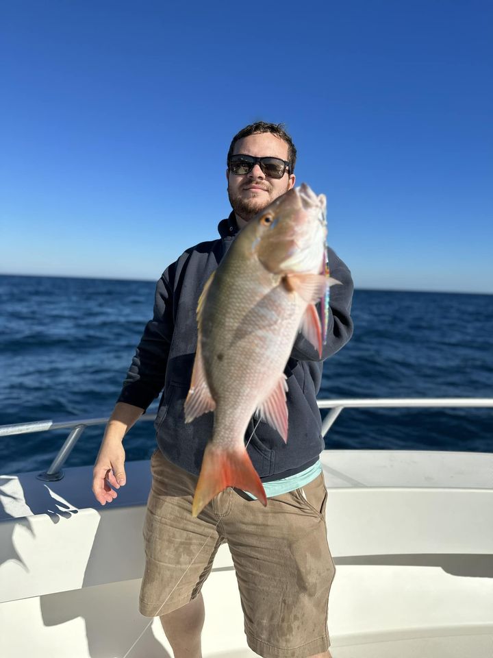 Cole Riback was fun fishing with his father, Capt. Dave of the Queen Mary from Point Pleasant, when he boated this mutton snapper off Jupiter. Florida.